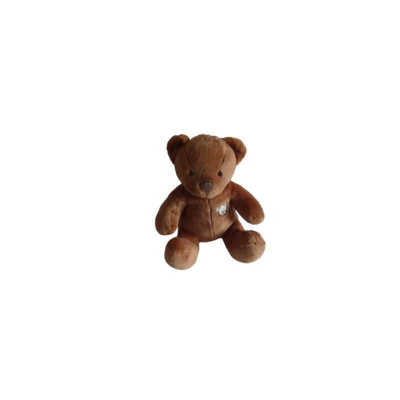 Doudou peluche ours position assise 23 cm environ, Marron tête d'ours brodé. Etat : Comme neufRecipient :