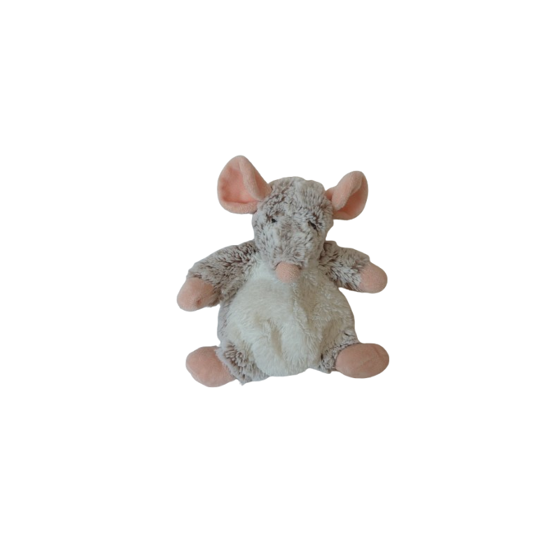 Doudou peluche souris 25 cm environ, blanc marron chiné saumon, billes dans le corps. Etat : Parfait étatRecipient :