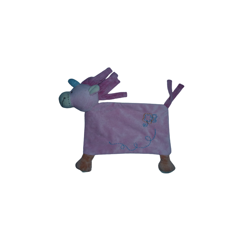Doudou plat licorne 26 cm environ , rose crème. Etat : Comme neuf. DOUDOU DIFFICILE A TROUVER