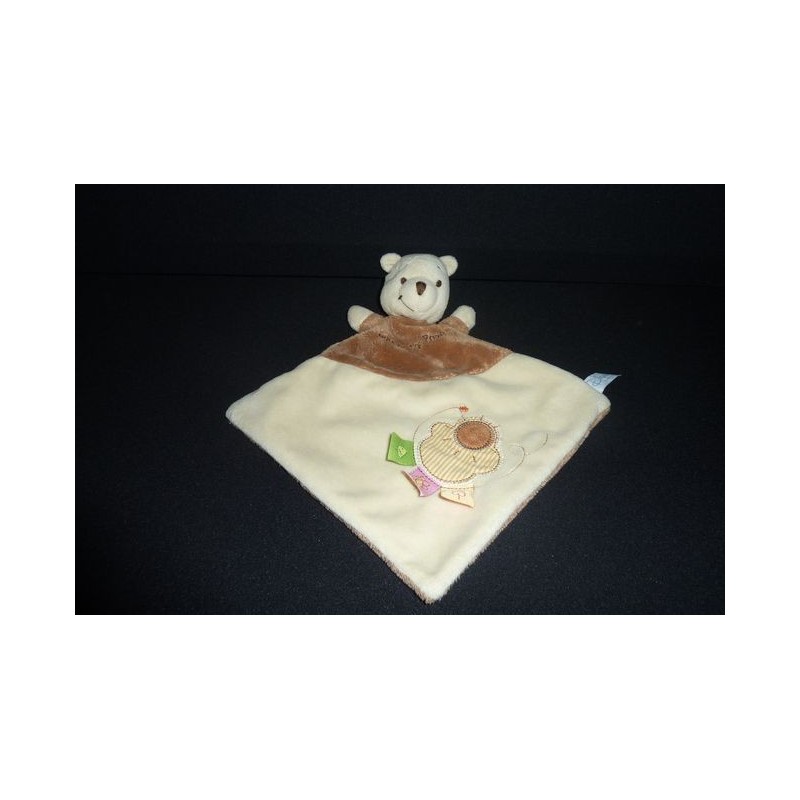 Description du doudou : Doudou plat ours Winnie Disney, forme losange de 30 cm environ. Coloris : marron, beige. Doudou super doux. Etat : Comme neuf. Produit original. DOUDOU DIFFICILE A TROUVER