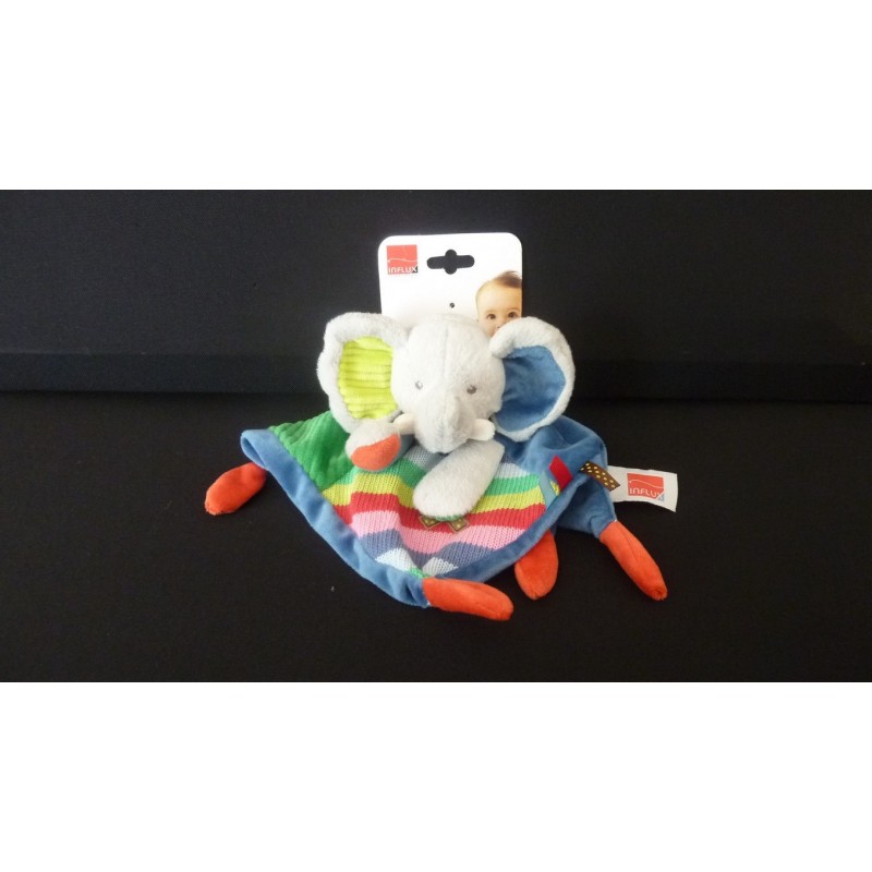 Description du doudou : Doudou plat éléphant. Etat : Neuf, produit original.Recipient :