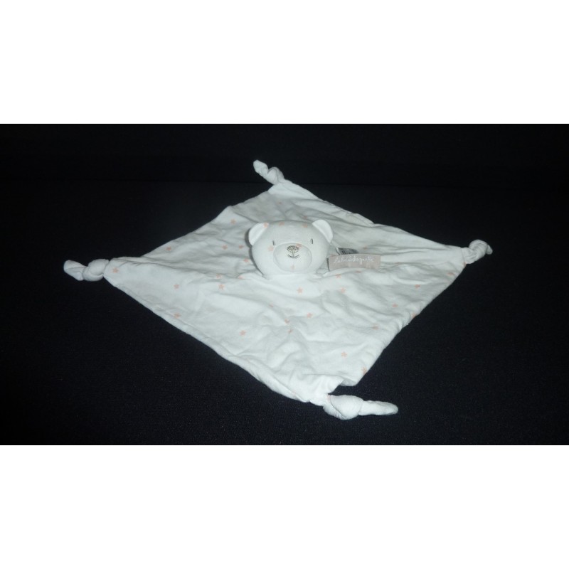 Description du doudou : Doudou plat ours, 4 nouages , tissu imprimé d'étoiles. Doudou super doux. Etat : Neuf sans étiquette boutique. Produit original.Recipient :