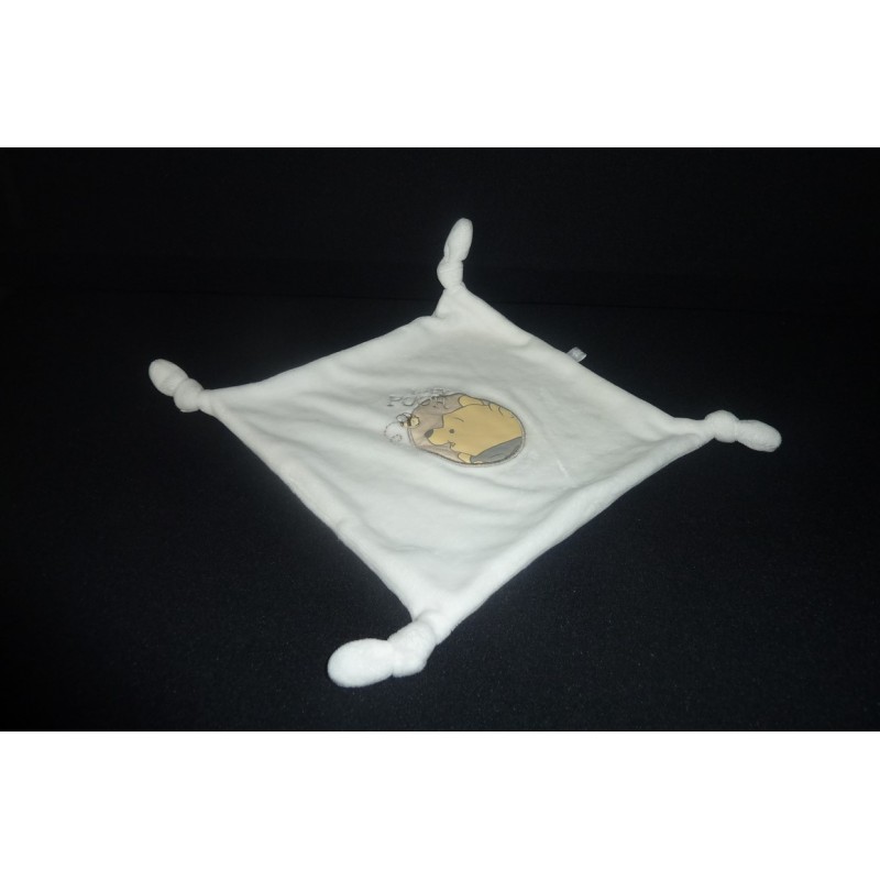 Description du doudou : Doudou plat ours Winnie, 4 nouages. Doudou super doux. Etat : Occasion très bon état mais petites taches rien de méchant. Produit original.Recipient :