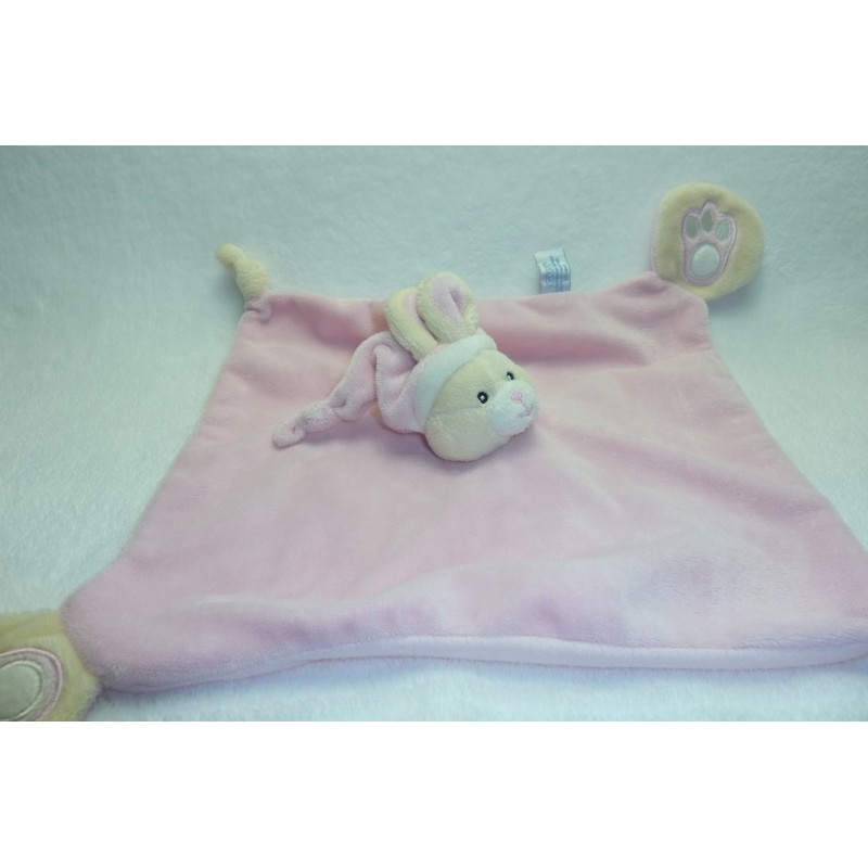 Description du doudou : Doudou plat lapin Gipsy, 27x27 cm environ, 2 nouages. Coloris : rose, écru. Doudou super doux. Etat : Très bon état (bouloches au verso). Produit original. DOUDOU DIFFICILE A TROUVER