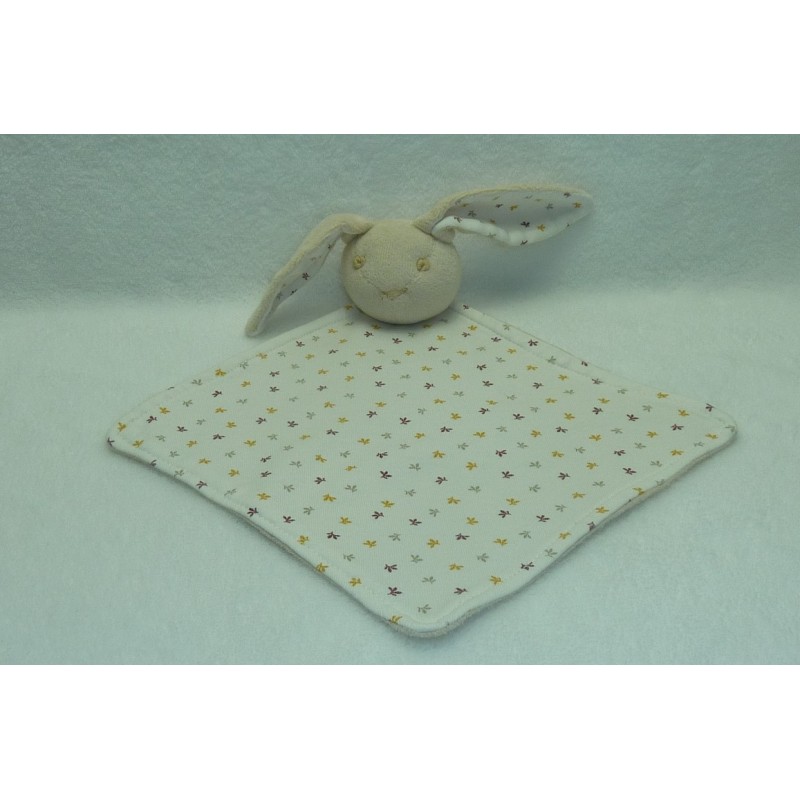 Description du doudou : Doudou plat lapin, forme losange de 27 cm environ de longueur sans compter les oreilles. Coloris : marron clair, blanc à motifs. Doudou super doux. Etat : Très bon état. Produit original. DOUDOU DIFFICILE A TROUVERRecipient :