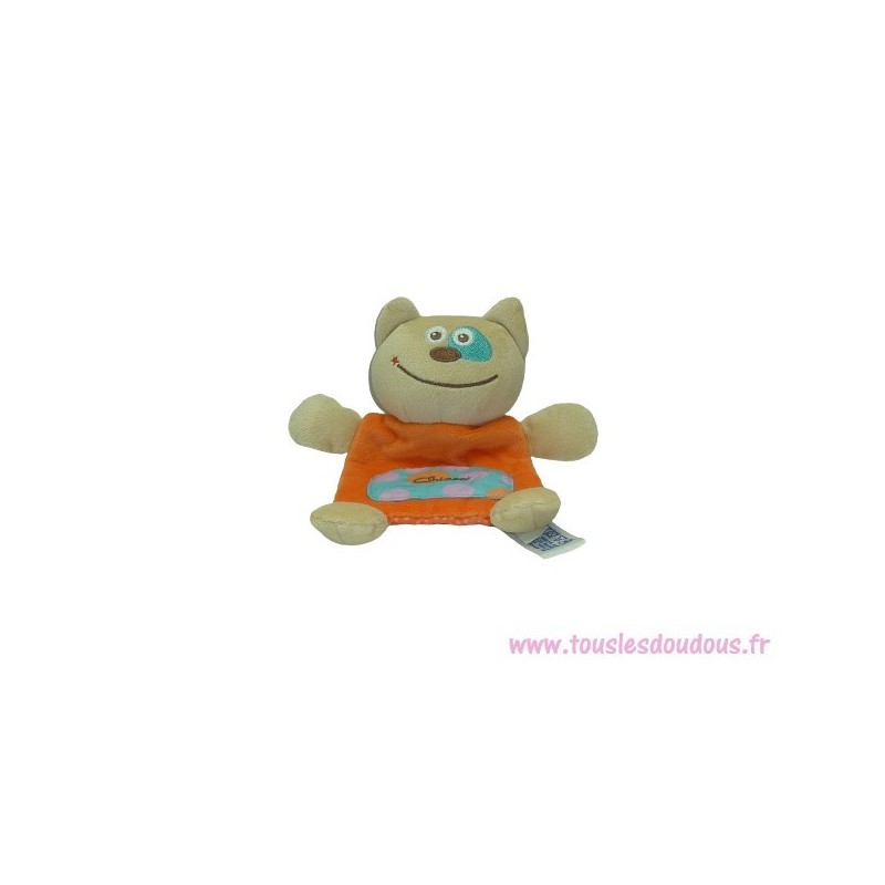 Description du doudou : Doudou plat ours de 20 cm environ, matière bruissante, Coloris : orange. Doudou super doux. Etat : Neuf sans étiquette boutique. SOS DOUDOU DIFFICILE A TROUVER.Recipient :