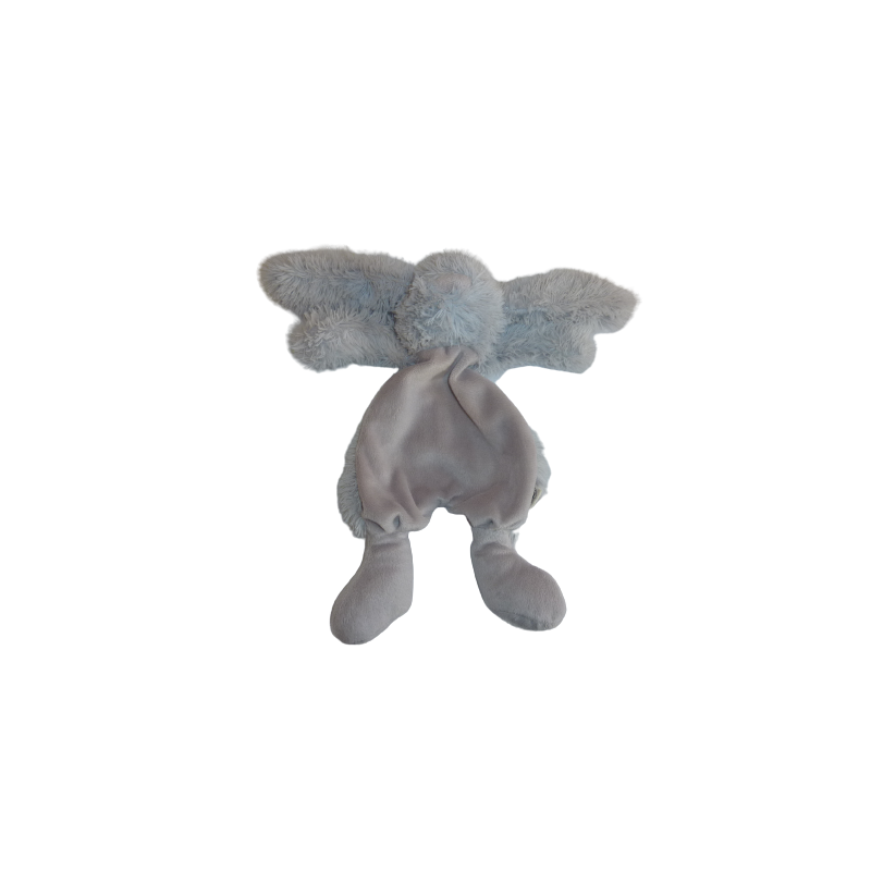 Doudou plat lapin 29 cm environ (sans les oreilles), gris taupe. Etat : Comme neuf (étiquette de la marque coupée). DOUDOU DIFFICILE A TROUVER.