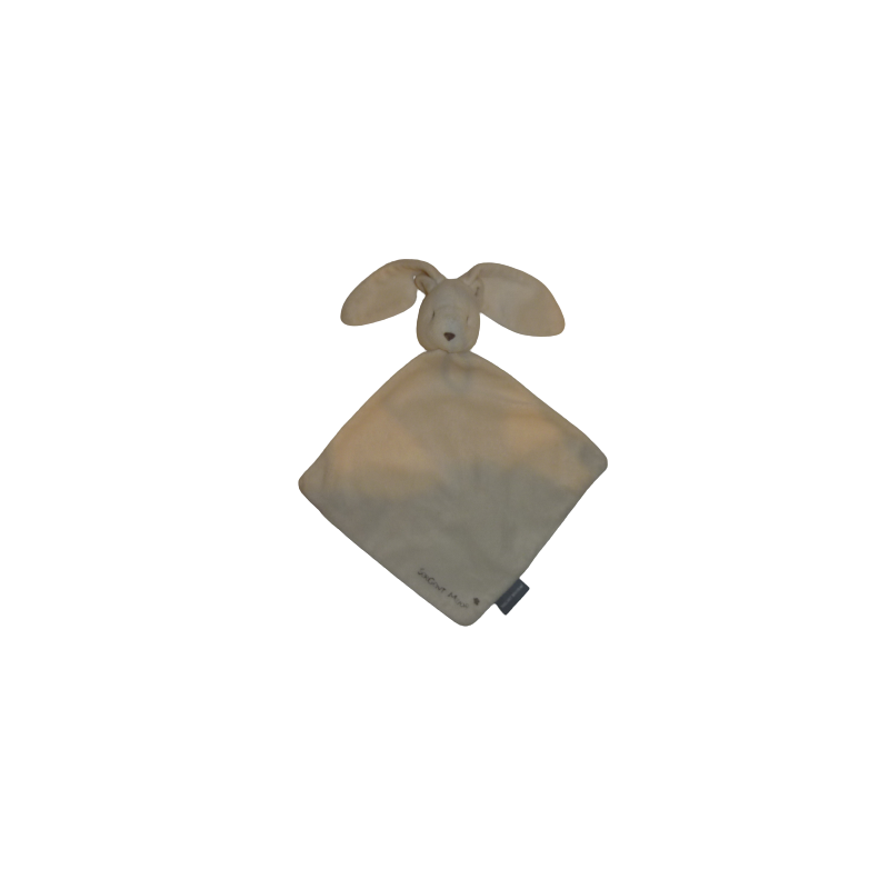 Doudou plat lapin forme losange 43 cm environ oreilles comprises, écru. Etat : Occasion Comme neuf. DOUDOU DIFFICILE A TROUVER.