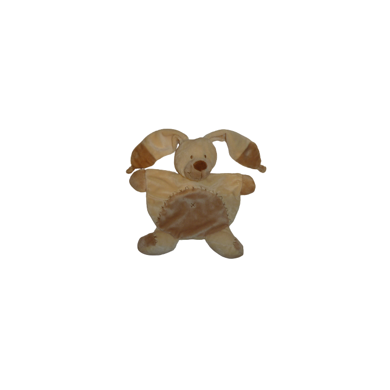 Doudou plat lapin 20 cm environ sans les oreilles, marron beige motif croix. Etat : Comme neuf. DOUDOU DIFFICILE A TROUVER.