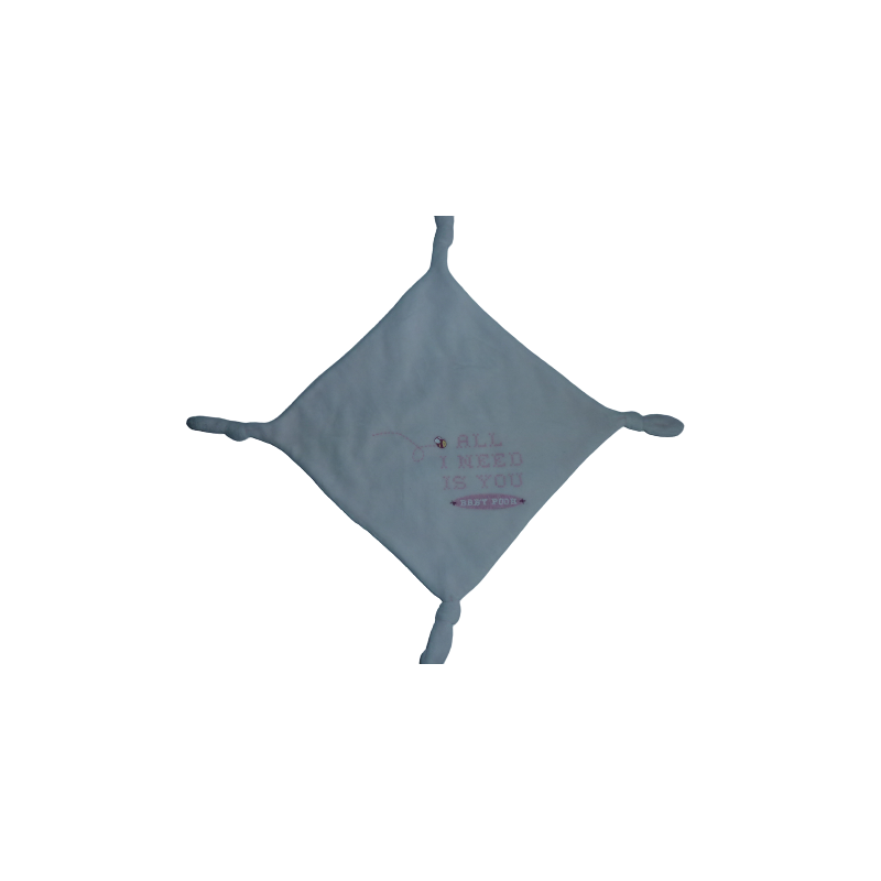Doudou carré plat All I need is you 22x22, rose 4 nouages. Etat : Bon état (Etiquette de la marque coupée). DOUDOU DIFFICILE A TROUVER.Recipient :