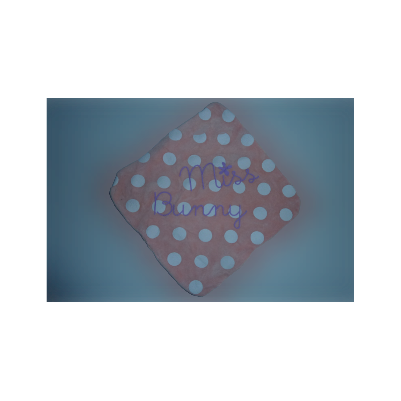 Doudou carré plat Miss Bunny 21x21 cm environ, pêche ronds blancs. Etat : Très bon état (étiquette de la marque coupée). DOUDOU DIFFICILE A TROUVER.Recipient :