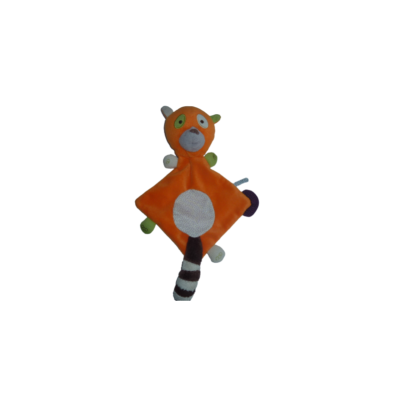 Doudou plat raton laveur 36 cm environ, orange. Etat : Très bon état (étiquette de la marque coupée). DOUDOU DIFFICILE A TROUVERRecipient :