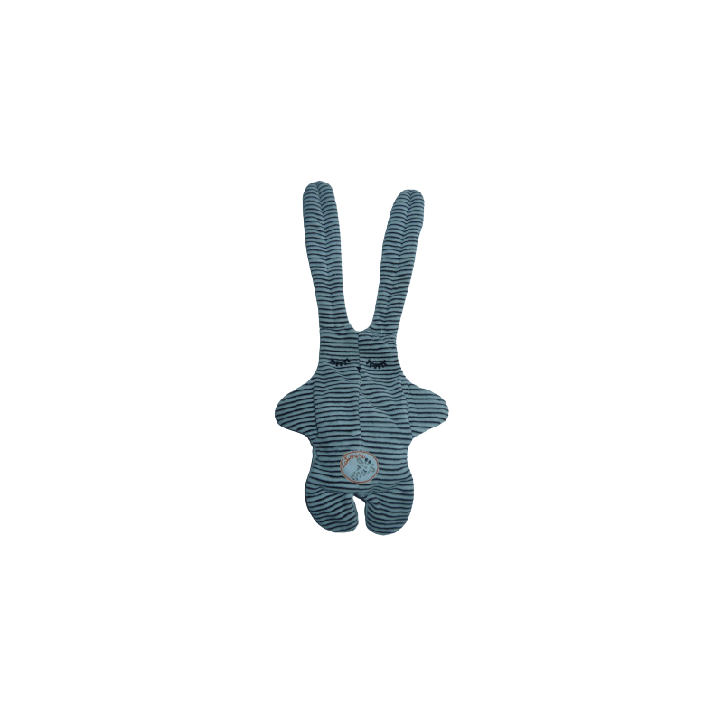 Doudou lapin 2 faces 36 cm environ, rayures et motifs. Etat : Très bon état. DOUDOU DIFFICILE A TROUVER