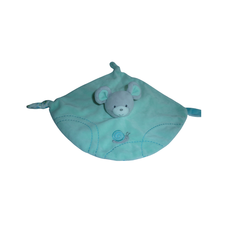 Doudou plat souri 29 cm environ, vert motifs escargot brodé. Etat : Neuf sans étiquette boutique. DOUDOU DIFFICILE A TROUVER