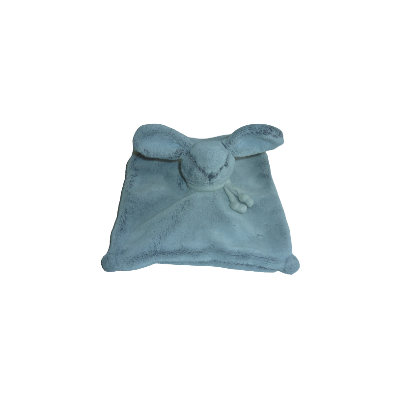 Doudou plat lapin 20x20 cm environ, gris. Etat : Bon état (étiquette de la marque coupée). DOUDOU DIFFICILE A TROUVER