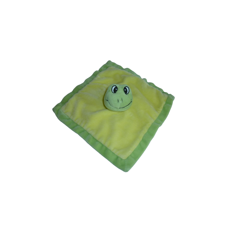 Doudou plat grenouille 22x22 cm environ, vert jaune. Etat : Neuf sans étiquette boutique. DOUDOU DIFFICILE A TROUVER