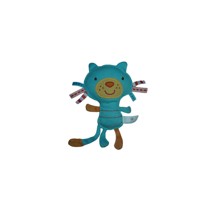 Doudou plat lot de 2 chat ou ours 20 cm environ, matière bruissante, turquoise orange. Etat : Bon état mais ils comportent des taches (idéal doudou de secours). DOUDOU DIFFICILE A TROUVER