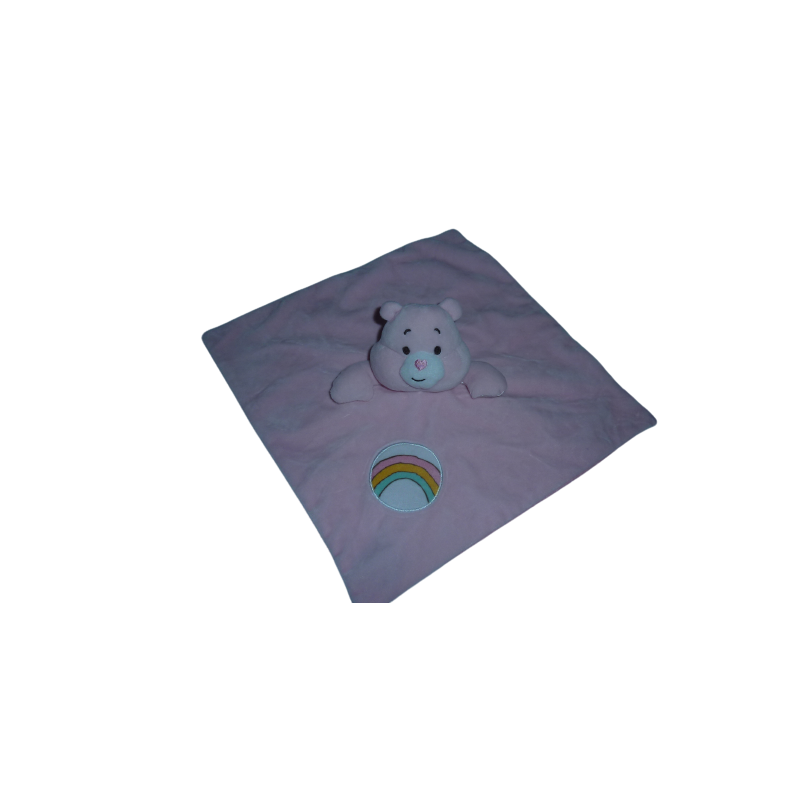 Doudou plat ours 29x29 cm environ, grelot, rose. Etat : Comme neuf (étiquette de la marque coupée). DOUDOU DIFFICILE A TROUVER