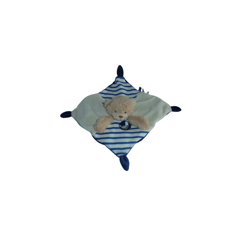 Doudou plat ours crème bleu mouette brodée 22x22 cm environ. Etat : Comme neuf. DOUDOU DIFFICILE A TROUVER