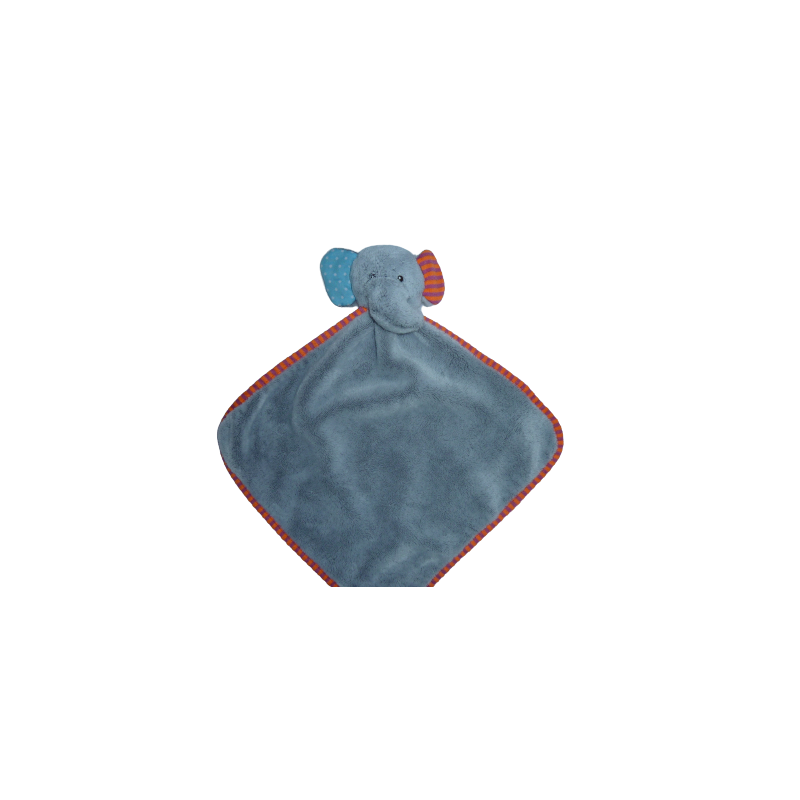 Doudou plat éléphant forme losange 40 cm environ, grelot gris . Etat : Comme neuf (étiquette de la marque coupée)Recipient :