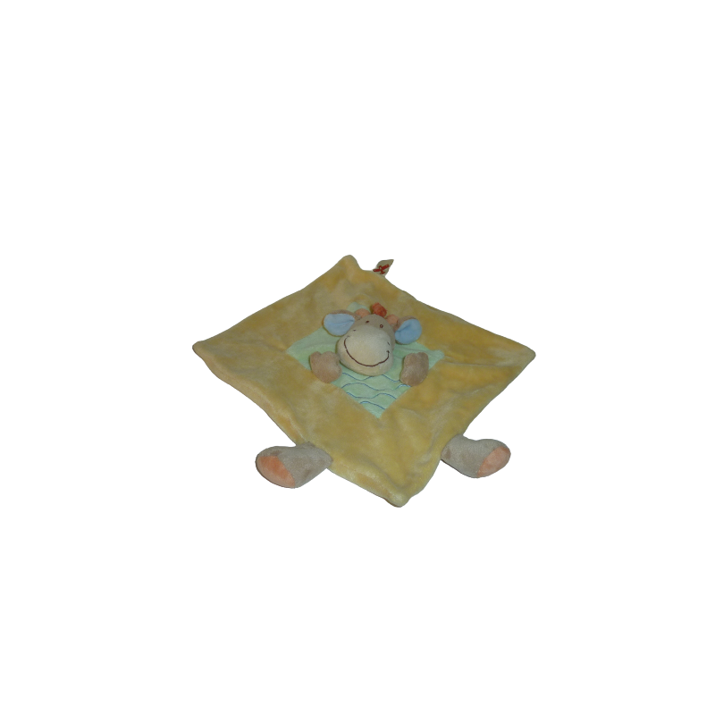Doudou plat vache 26x26 cm environ, jaune vert. Etat : Excellent étatRecipient :