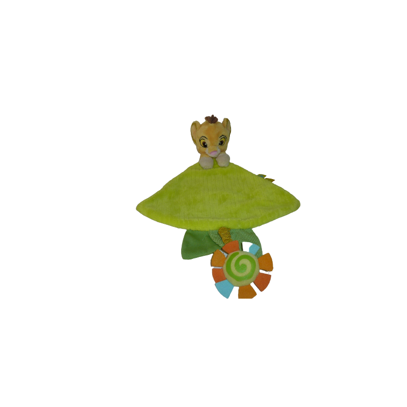 Doudou plat forme losange 39 cm environ tout compris, vert fluo vert kaki au verso. Etat : Comme neuf