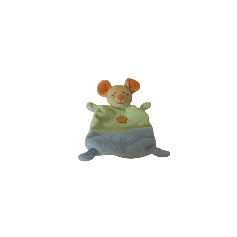 Doudou plat souris 23 cm environ, bleu vert. Etat : Excellent état
