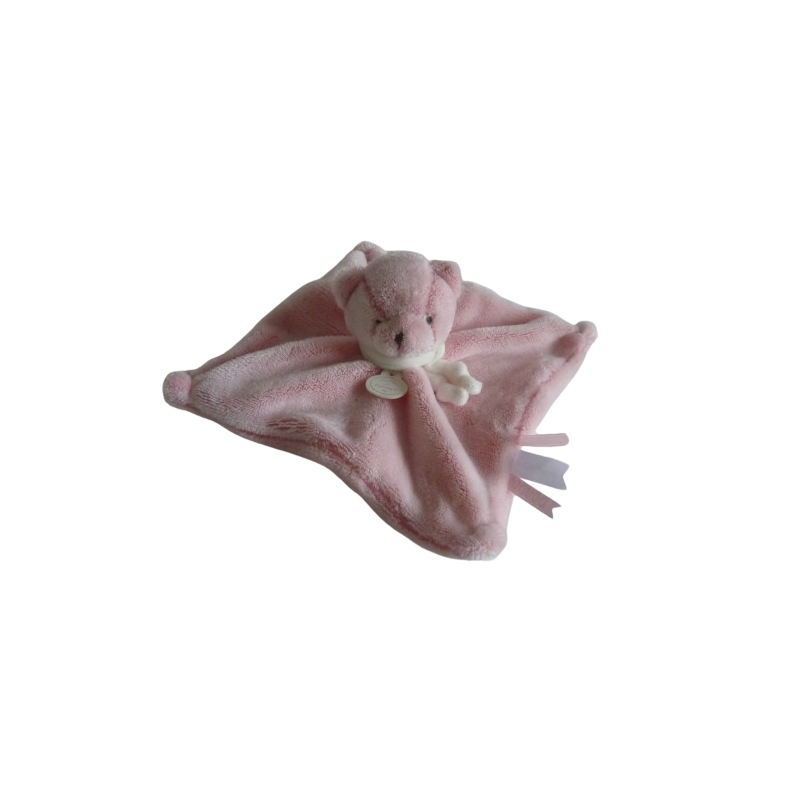 Doudou plat chat rose 23x23 cm environ. Etat : Comme neuf