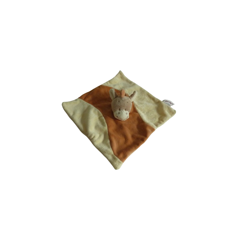 Doudou plat cheval 24x24 cm environ, marron jaune crème. Etat : Comme neuf