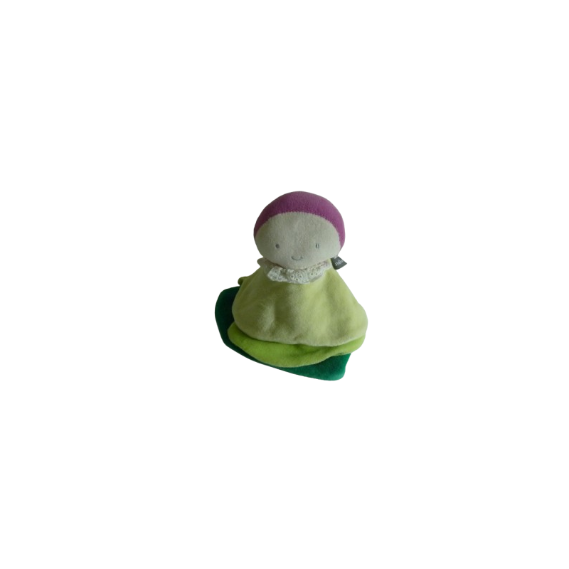 Doudou plat poupée vert mauve 22 cm environ. Etat : Comme neufRecipient :