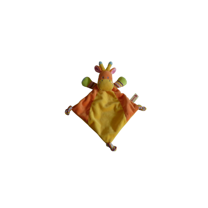 Doudou plat girafe forme losange 35 cm environ, jaune orange. Etat : Comme neufRecipient :