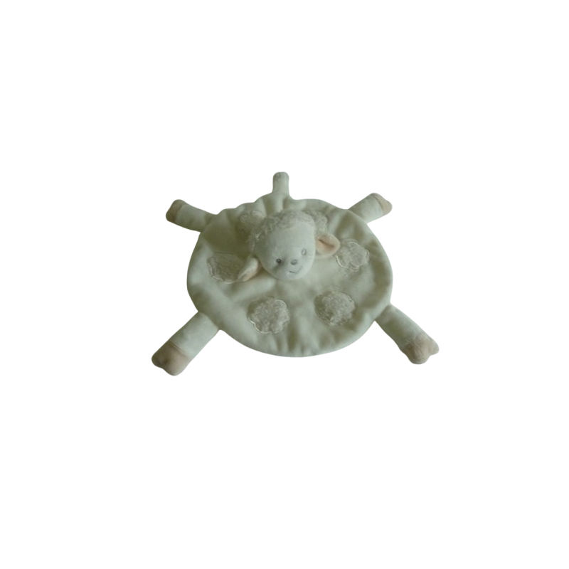 Doudou plat mouton 21 cm environ de large, blanc beige. Etat : Excellent état