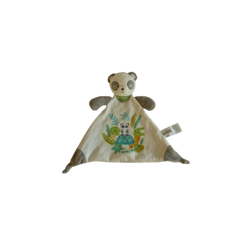 Doudou plat panda forme losange 26cm environ, gris blanc motifs panda tortue feuillages Etat. : Comme neufRecipient :