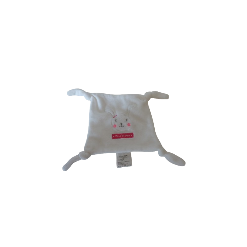Doudou carré plat Mon P'tit lapin blanc Gémo