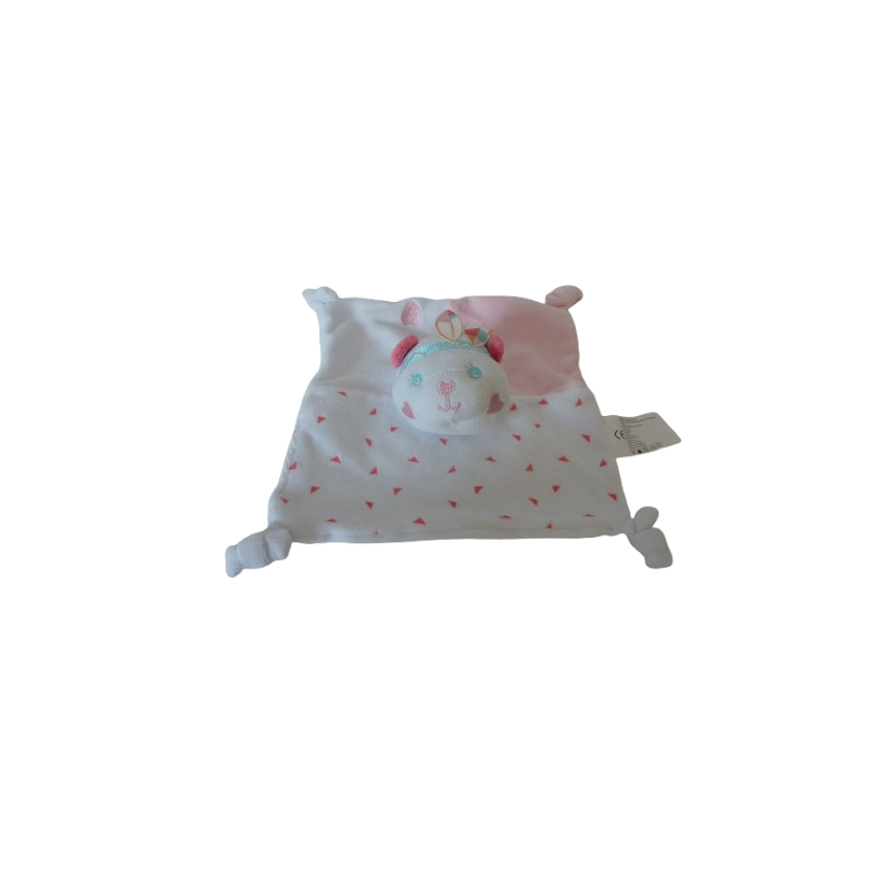 Doudou plat ours indien 21x21 cm environ, 4 nouages, blanc rose. Etat : Comme neufRecipient :