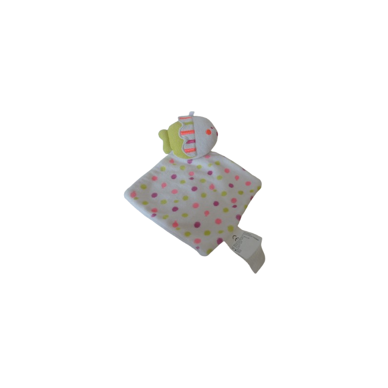 Doudou plat poisson 24 cm environ, blanc motifs pois. Etat : Comme neufRecipient :