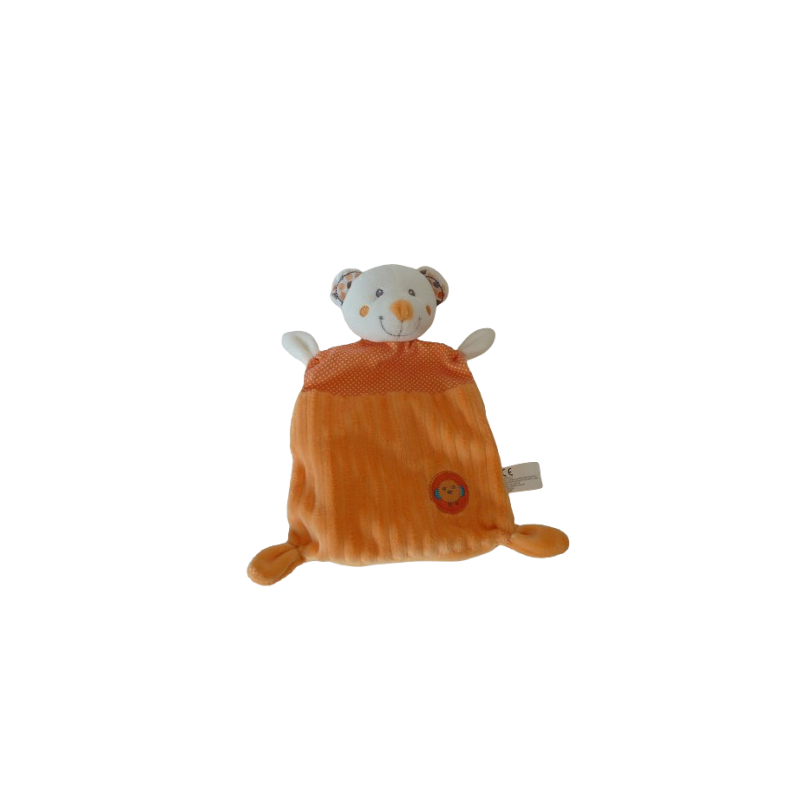 Doudou plat ours 25 cm environ, orange motifs. Etat : Comme neufRecipient :