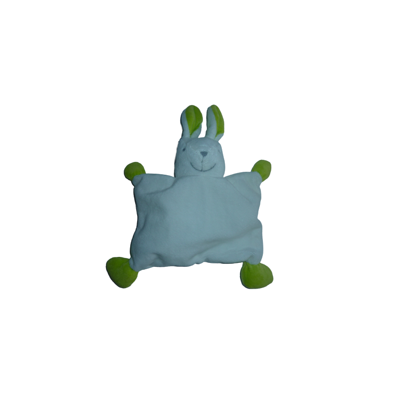 Doudou semi plat lapin 30 cm environ, blanc vert. Etat : Très bon état (juste un peu moins de matière à l'intérieur). DOUDOU DIFFICILE A TROUVER.Recipient :