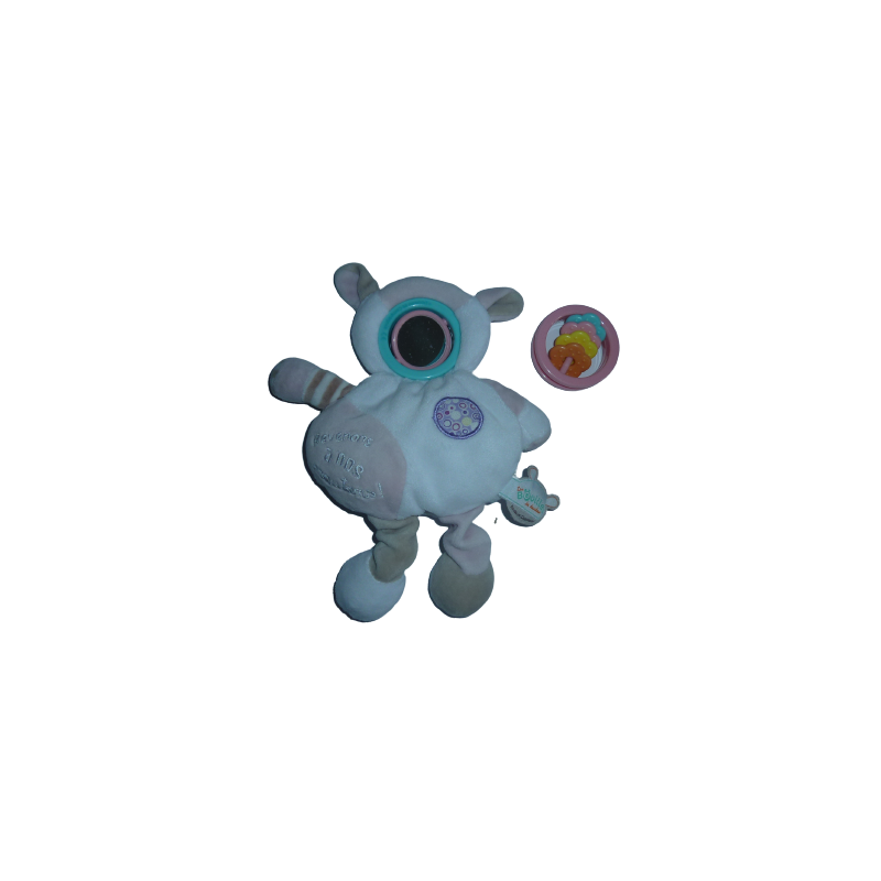 Doudou semi plat mouton 24 cm environ, blanc rose taupe. Etat : Très bon état. DOUDOU DIFFICILE A TROUVER.Recipient :