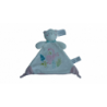 Doudou plat ours carré de 28x28 cm environ, grelot, bleu motif lune étoile. Etat : Comme neuf