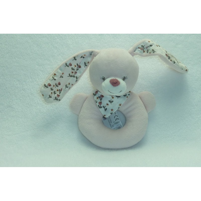 Description du doudou : Doudou hochet lapin de Monoprix, 24 cm environ de hauteur tout compris, grelot. Coloris : rose pâle, écharpe et intérieur des oreilles tissu fleuri. Doudou super doux. Etat : Neuf sans étiquette boutique. Produit original. DOUDOU DIFFICILE A TROUVERDestinataire :