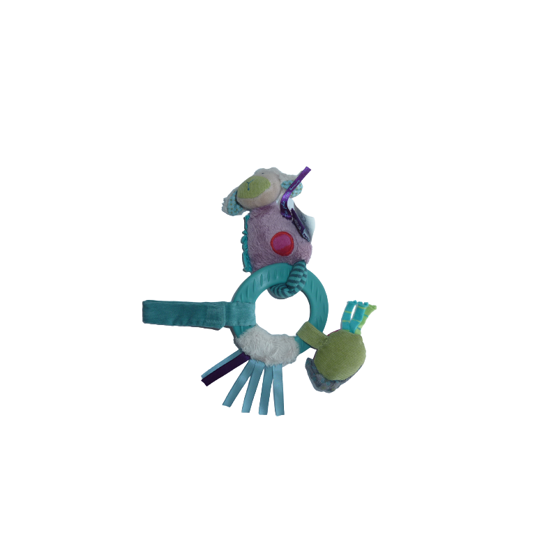 Doudou hochet éveil mouton 24 cm environ, anneau de dentition, grelot, pouet pouet. Etat : Très bon état. DOUDOU DIFFICILE A TROUVER.Destinataire :
