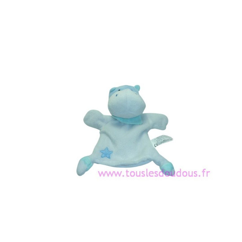 Description du doudou : Doudou marionnette hippopotame de 20 cm environ. Coloris : blanc, bleu, motif étoile. Doudou super doux. Etat : Neuf. Produit original. DOUDOU DIFFICILE A TROUVER