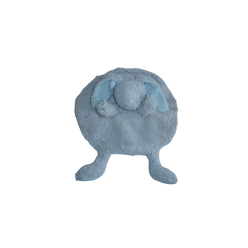 Doudou marionnette lapin 27 cm environ de large, gris bleu. Etat : Très bon état. DOUDOU DIFFICILE A TROUVER