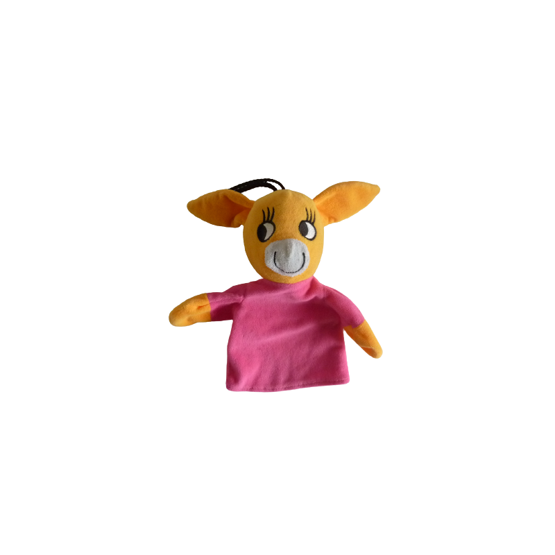Doudou âne marionnette 28 cm environ, jaune rose fushia. Etat : Très bon état. DOUDOU DIFFICILE A TROUVERDestinataire :