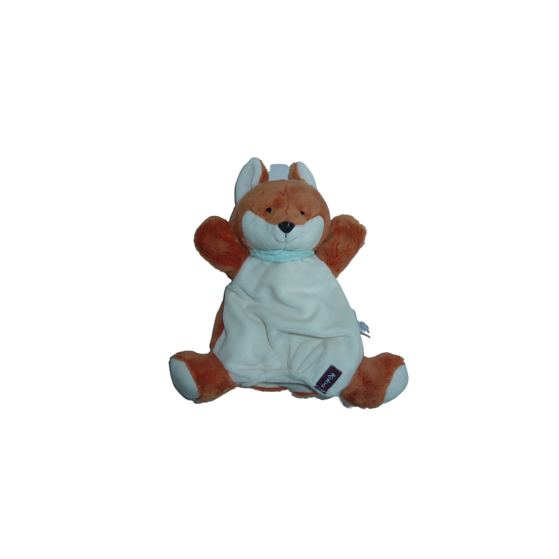 Doudou marionnette renard 36 cm environ, orange foncé écru. Etat : Comme neuf