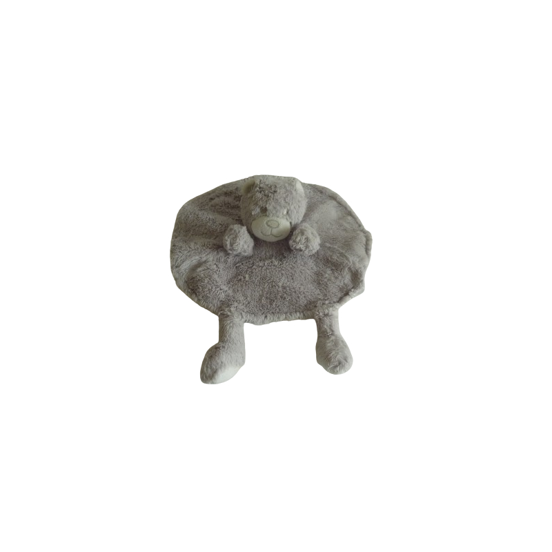 Doudou marionnette ours 26 cm environ de large, gris blanc. Etat : Très bon état (étiquette marque coupée)