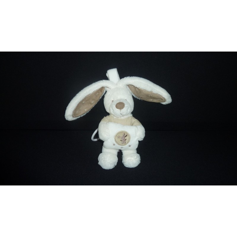 Description du doudou : Doudou musical lapin de 21 cm environ (sans les oreilles). Doudou super doux. Etat : Neuf (encore l'attache étiquette boutique mais plus l'étiquette boutique), produit original.Destinataire :
