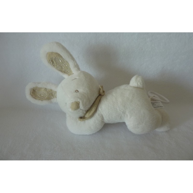 Description du doudou : Doudou musical lapin de 28 cm environ de longueur (sans les oreilles). Doudou super doux. Etat : Neuf sans étiquette boutique. Produit original. DOUDOU DIFFICILE A TROUVER