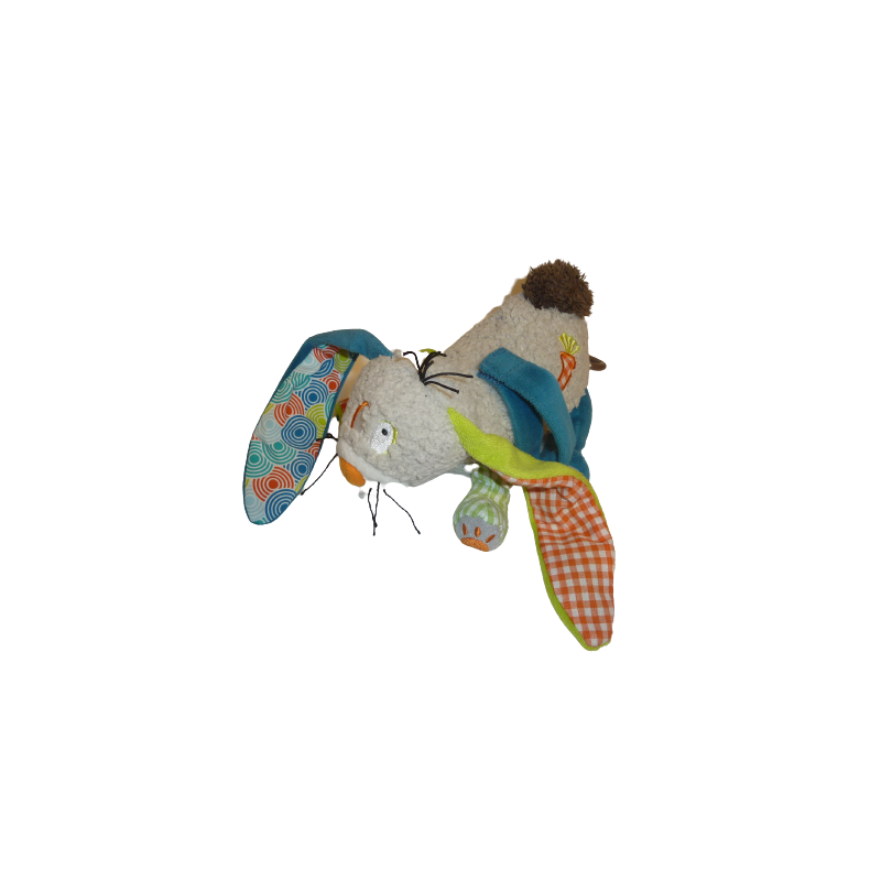 Doudou lapin musical 25 cm environ, multicolore. Etat : Très bon état. DOUDOU DIFFICILE A TROUVER.Destinataire :
